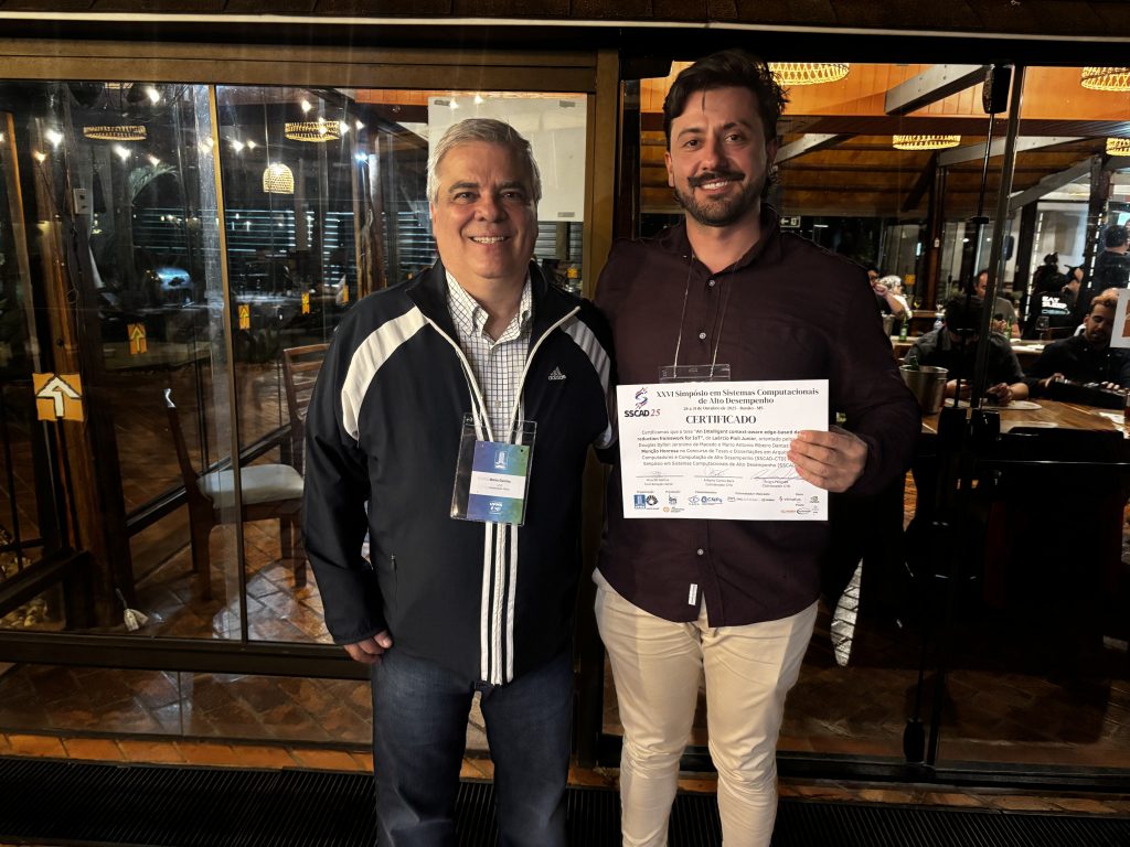 O egresso do curso de Doutorado do PPGCC, Laércio Pioli Junior, teve sua tese escolhida entre as as três melhores do Concurso de Teses e Dissertações em Arquitetura de Computadores e Computação de Alto Desempenho (SSCAD-CTD 2025), realizado em Bonito/MS. A tese, intitulada “An Intelligent context-aware edge-based data reduction framework for IoT”, foi realizada sob orientação do Prof. Douglas Dyllon Jeronimo (PPGCC) de Macedo e coorientação do Prof. Mario Antonio Ribeiro Dantas (UFJF). A tese foi premiada com “Menção Honrosa”.